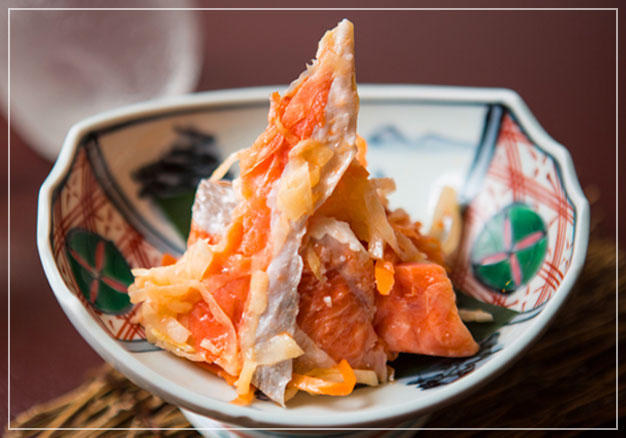 紅鮭を米、麹、野菜などと漬け込んで発酵させた北海道の郷土料理です